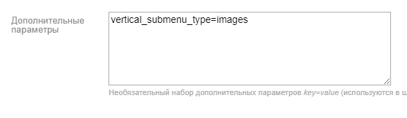 4. Есть возможность индивидуально для категории задать вид, используя поле Дополнительные параметры в настройках категории. С новой строки вставьте параметр vertical_submenu_type=вид подменю: