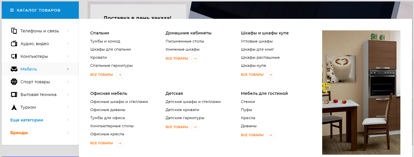 7. Для категорий есть возможность вывода баннера в выпадающем меню вида "С картинками", "Развернутое без иконок" или "Развернутое с иконками":