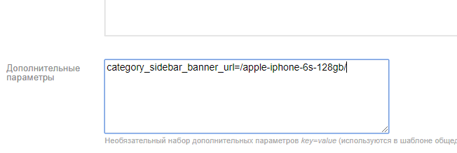 3. Если, необходимо на баннер добавить ссылку, то в настройках категории в опции "Дополнительные параметры" добавьте с новой строчки параметр (без пробелов): category_sidebar_banner_url=ссылка: